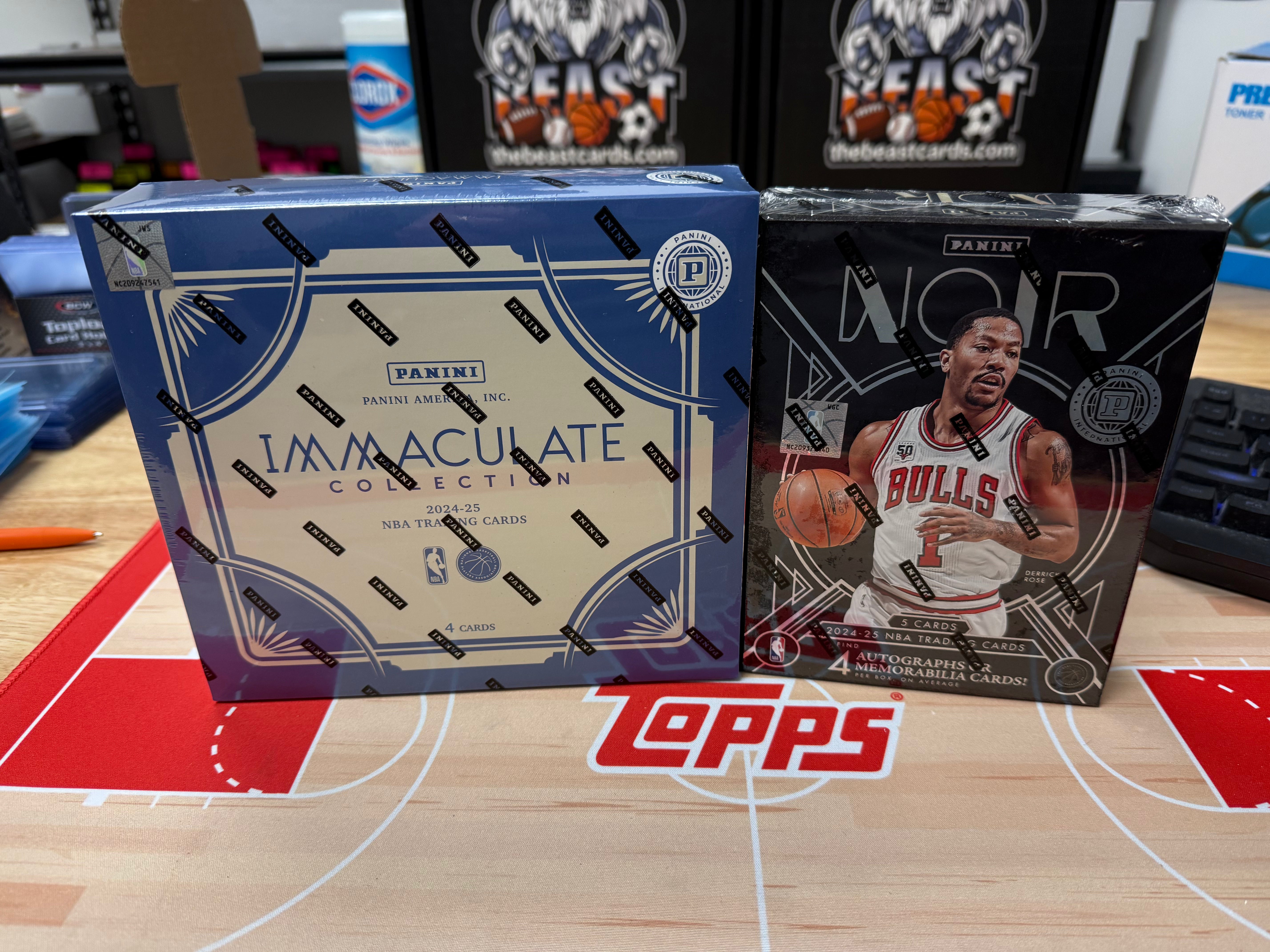 NBA #2125 - PYT 2024-25 Immaculate International x 1 Box AND Noir International x 1 Box! VendorBeast Sports Cards & More Share WhatsApp Deel Tweet Pin it Messenger Email Last stock! Product form 7 Autos or Mem! 2 Parallel! Most cards should be /49 or less! Video can be watched live on our... Read more Style Free pickup in our shop(s) Atlanta Hawks ($89) Chicago Bulls ($119) Cleveland Cavaliers ($59) Dallas Mavericks ($139) Detroit Pistons ($75) Golden State Warriors ($199) LA Clippers ($25) Memphis Grizzlies ($69) Miami Heat ($49) Minnesota Timberwolves ($99) New Orleans Pelicans ($45) New York Knicks ($65) Oklahoma City Thunder ($115) Orlando Magic ($59) Phoenix Suns ($35) Sacramento Kings ($35) San Antonio Spurs ($175) Toronto Raptors ($45) Washington Wizards ($69) Free pickup in our shop(s) 1 in stock $89.00 Excl. VAT Quantity Add to cart This item is a recurring or deferred purchase. By continuing, I agree to the cancellation policy and authorize you to charge my payment method at the prices, frequency and dates listed on this page until my order is fulfilled or I cancel, if permitted. Shipped today? Order within: Jan 31, 2026 17:00:00 -0500