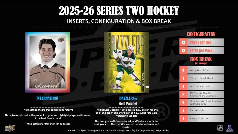 NHL #575 - PYT 2025-26 Upper Deck Series Two Hobby x 3 Boxes!